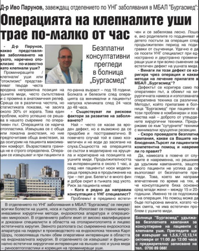 Да, намесата в повече от случаите е навременна, но решихме да удължим кампанията, защото много пациенти не успяха да се възползват от безплатните прегледи. Това, което ми направи впечатление по време на тях, е че консултациите бяха основно сред млади жени – между 15 и 20-годишни. Именно те се подложиха и на операция. Но помощ може да бъде потърсена винаги, когато човек смята, че има естетичен проблем с ушните миди.