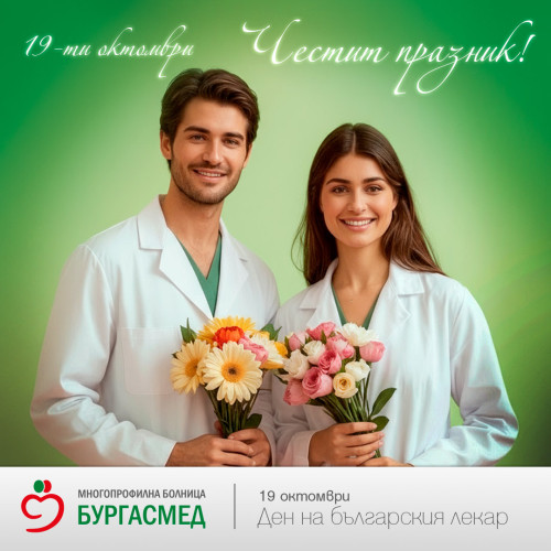 Ръководствата на МБАЛ и ДКЦ „Бургасмед“ поздравяват всички лекари с техния професионален празник - Деня на българския лекар, и им пожелават здраве и лични и професионални успехи!