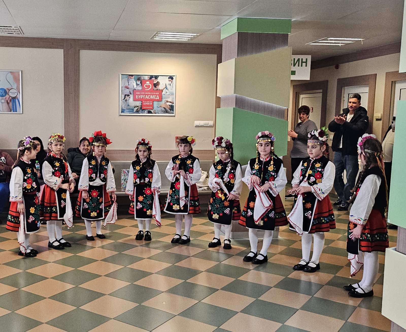 Облечени в красиви фолклорни носии, малки лазарки от IV група на ДГ „Детелина“ посетиха УМБАЛ „Бургасмед“ и изпълниха обича ...